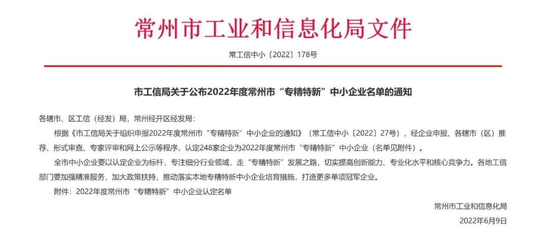 喜訊!江蘇海目星獲評2022年度常州市“專精特新”中小企業